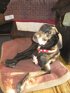 I was seeing Presley standing insistently in front of me, silently demanding I scratch her head, especially just behind her left ear. I was seeing her cruise from food dish to food dish, snatching up mouthfuls and then moving on to claim the next, as if the rule from our childhoods, where we lick each open tootsie roll pop to stake our claim, applies to food dishes for dogs. I was seeing her run up and down the pasture paths with me despite my admonitions to take it easy; when we turn around to make our way back to the house, her eyes are dancing, her big lolling tongue is hanging out the side of her mouth, and her back legs and hips are drooping as she staggers, elated and exhausted, back onto her corner of the couch.